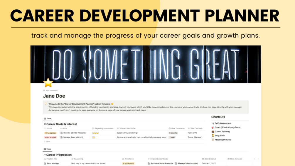 ⚙️ 1 Free, all-in-one Notion career development planning system.